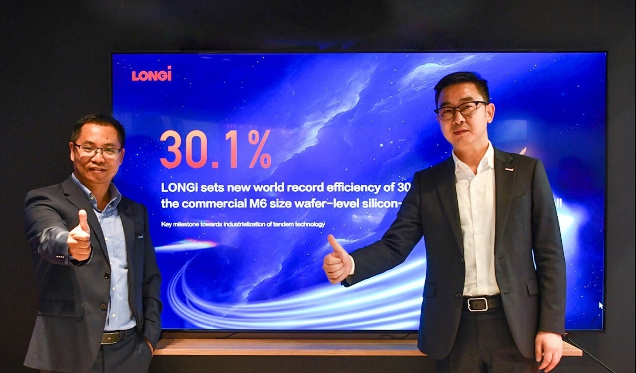 The world-leading solar technology company, LONGi Green Energy Technology Co., Ltd. (hereafter as "LONGi"), officially announced the new world record efficiency of 30.1% for the commercial M6 size wafer-level silicon-perovskite tandem solar cell on June 19, 2024 at the 2024 Intersolar Europe in Munich, Germany.
