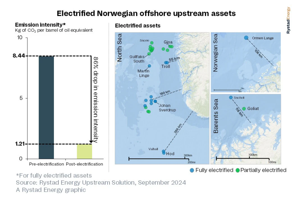 While Norway is portrayed as being in an almost perfect position to unleash electrification, Rystad acknowledges that other producing countries may not be as lucky since they could face logistical hurdles when converting assets, such as long distances from the mainland, a lack of power grid infrastructure, and limited renewable power capacity.