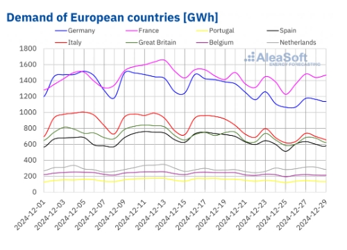 For the week of December 30, according to AleaSoft Energy Forecasting demand forecasts, demand will increase compared to the previous week in the German, French, Italian, Spanish, Belgian, Dutch and British markets, while in Portugal it will continue to decrease.