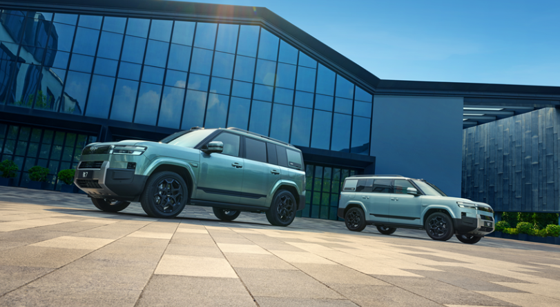The TAI 7 is positioned for China’s upper mid-size SUV market, blending rugged styling with family comfort. Its design combines a unibody platform with the look of a traditional off-road SUV. Features include a squared-off profile, double-layer headlights shaped in twin “L” patterns, and unpainted bumpers and side skirts that emphasize durability.