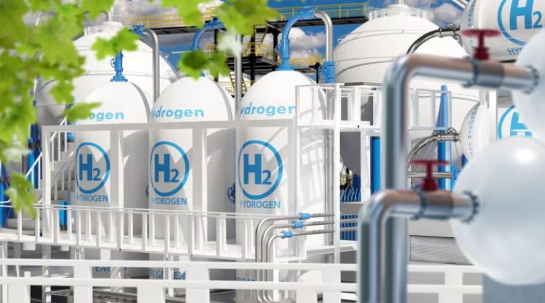 The green hydrogen is stored in the 21-meter-high tank at up to 50 bar