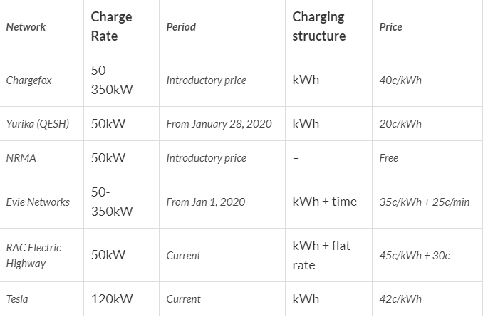 Then there is also Tesla, which is the most widespread of DC fast charging networks across Australia to date but of course is only available to owners of Tesla vehicles.