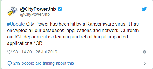 On Thursday, City Power reported that its system was hijacked by a Ransomware virus leaving customers unable to access the utility’s website or purchase prepaid electricity units from vendors.