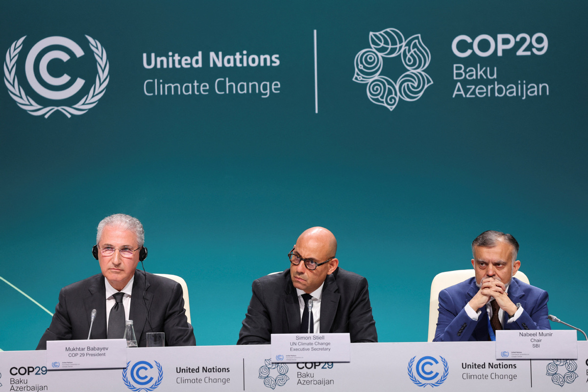 COP29 President Mukhtar Babayev, Executive Secretary of UNFCCC Simon Stiell and Nabeel Munir, Chair of the UNFCCC's Subsidiary Body for Implementation (SBI)…