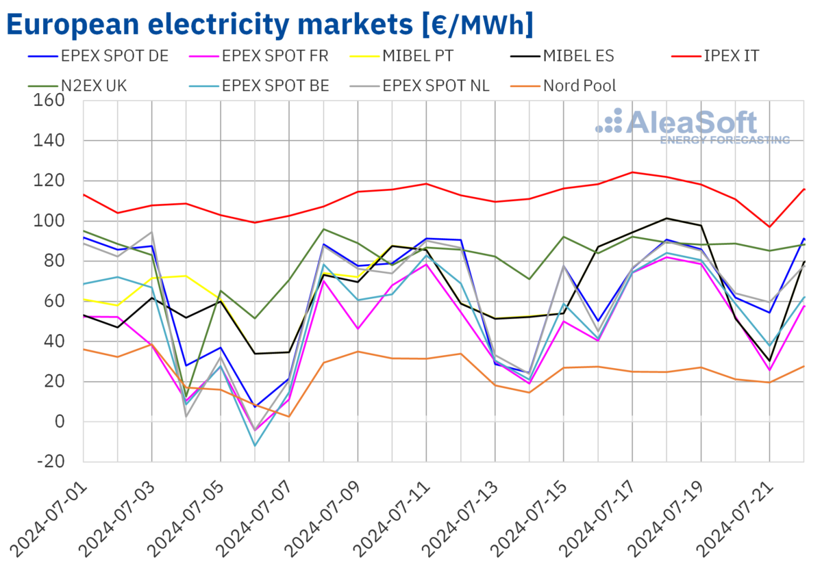 Image: AleaSoft Energy ForecastingElectricity prices increased in all major European markets in the third week of July, according to AleaSoft Energy Forecasting…