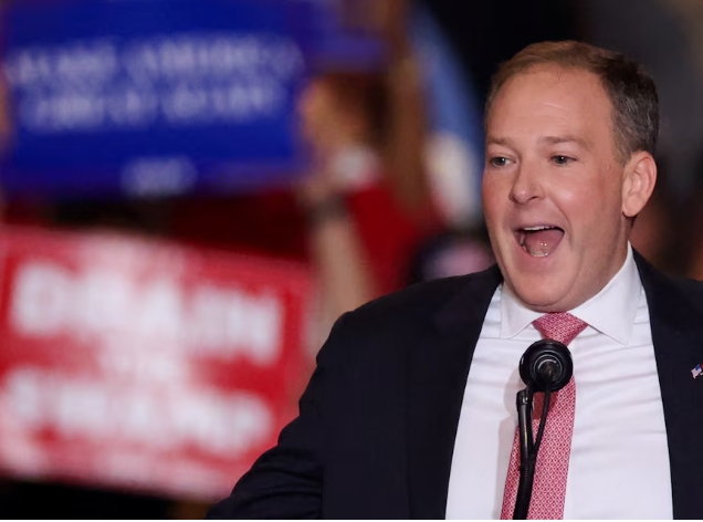 Former U.S. Rep. Lee Zeldin gestures as he speaks at the Nassau Veterans Memorial Coliseum during a rally held by Republican presidential nominees and former U.…