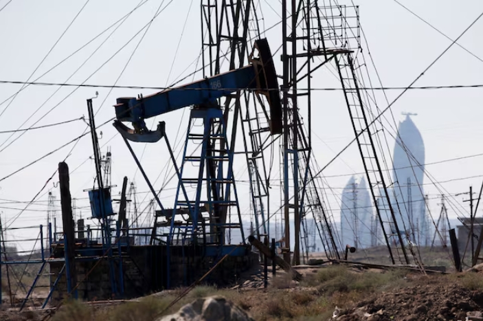 A nodding donkey pumps oil in an oil field in the settlement of Balaxani near Baku, Azerbaijan, October 5, 2017. Picture taken October 5, 2017. REUTERS/Grigory …