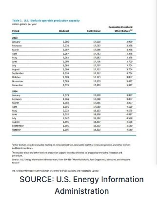 EIA: Ethanol Capacity up in October, Biobased Diesel Capacity Unchanged