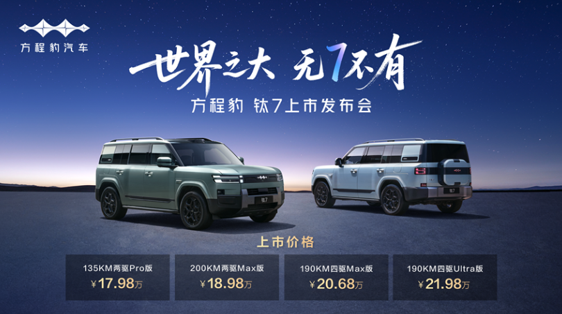 BYD’s FANGCHENGBAO TAI 7 SUV Hits Market, Starting at 179,800 Yuan