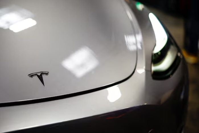 The Tesla logo is seen on a car at the Paris Games Week (PGW), a trade fair for video games in Paris, France, October 27, 2024.Automakers facing tougher Europea…