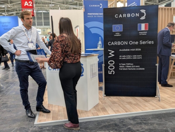 At the Intersolar trade show in Munich, the startup Carbon showcased its first demonstrator photovoltaic (PV) panel. Carbon is developing a gigafactory for sola…