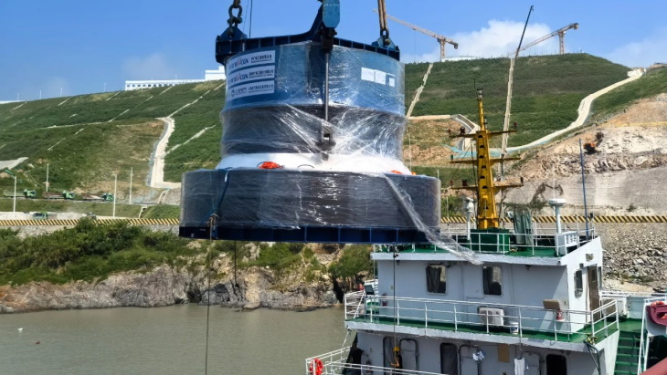 The reactor pressure vessel for unit 2 of the San'ao nuclear power plant has arrived at the construction site in China's Zhejiang province, CGN Cangnan …