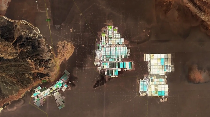 Aerial view of the brine pools and processing areas of the Soquimich (SQM) lithium mine on the Atacama salt flats. (Image from: SQM Corporate Presentation.)More…