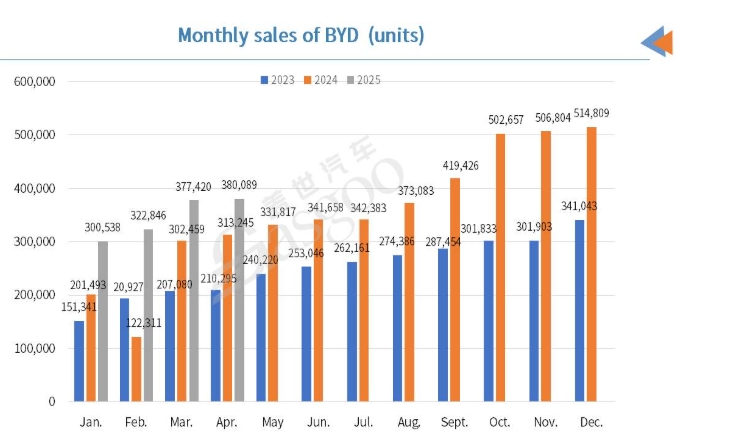 BYD Boasts 46.98% YoY Leap in Jan.-Apr. 2025 Vehicle Sales