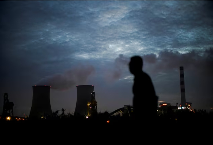A man walks past a coal-fired power plant in Shanghai, China, October 14, 2021.China's mostly coal-powered thermal generation ticked up 1.5% in 2024, offici…