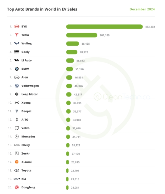 In the last stage of the 2024 race, BYD had another record month, this time with 483,000 registrations. That doubled Tesla’s result, which nevertheless wa…
