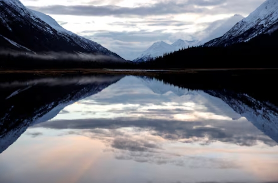 Snow capped mountains are reflected in Kenai Lake outside of Cooper Landing, in Anchorage, Alaska, U.S., November 3, 2021. Picture taken November 3, 2021.Taiwan…