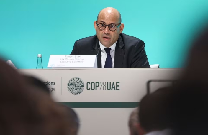 Executive Secretary of the United Nations Framework Convention on Climate Change (UNFCCC) Simon Stiell speaks during the United Nations Climate Change Conferenc…