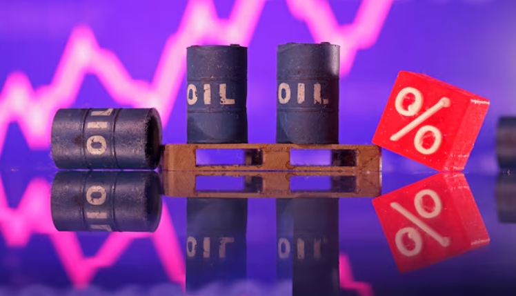 Miniatures of oil barrels and a rising stock graph are seen in this illustration taken January 15, 2024. REUTERS/Dado Ruvic/Illustration/File Photo Purchase Lic…