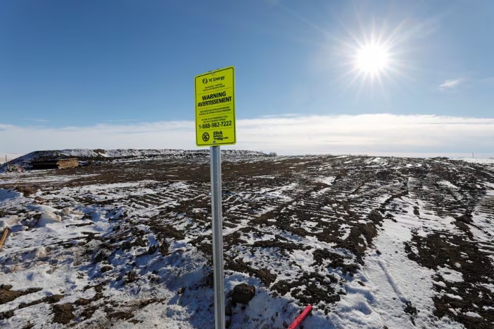 The route of the Keystone XL crude oil pipeline lies idle through a farmer's field near Oyen, Alberta, Canada February 1, 2021. REUTERS/Todd Korol/File Phot…