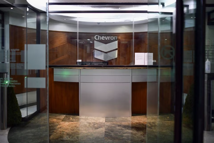 The Chevron office is pictured after the U.S. government granted a six-month license allowing Chevron to boost oil output in U.S.-sanctioned Venezuela, in Carac…
