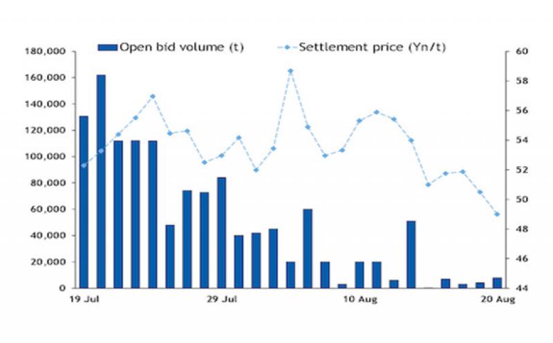 Prices in China's emission trading scheme have fallen to the lowest level since the market started trading last month, while trading volumes also dropped this w…