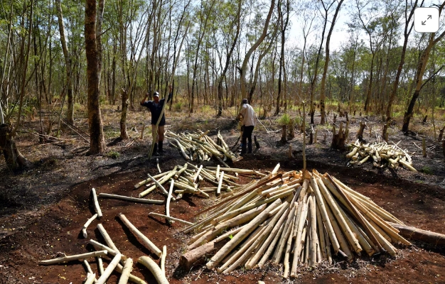 People prepare to burn wood to produce charcoal at a traditional charcoal factory in San Nicolas de Bari, Cuba, February 18, 2025.For Maria Elena Veiga, a 60-ye…