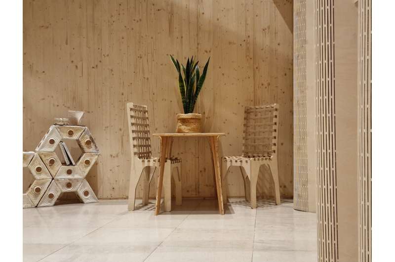 University of Cambridge architects are inviting visitors to the London Design Biennale to experience a prototype home constructed with flexible wooden partition…
