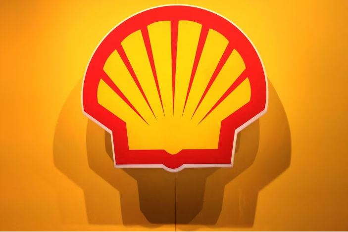The logo of British multinational oil and gas company Shell is displayed during the LNG 2023 energy trade show in Vancouver, British Columbia, Canada, July 12, …