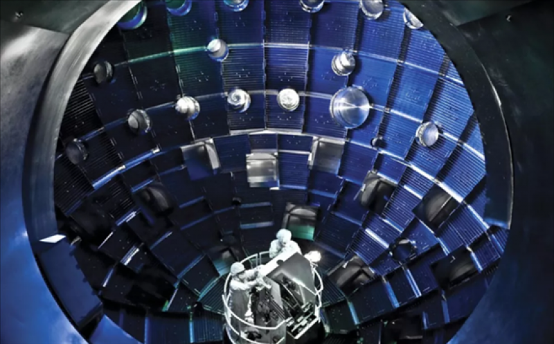 A laser blast in California creates a miniature sun for a tiny fraction of a second and ignites a self-sustaining chain reaction.