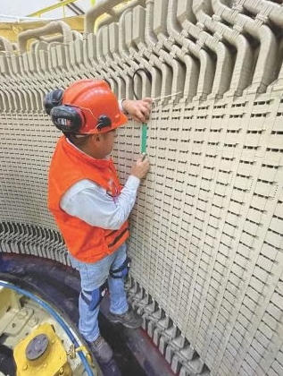 Technician installing an air gap sensor on the stator core laminations, ensuring precise positioning for accurate measurements.MC-monitoring’s extensive p…