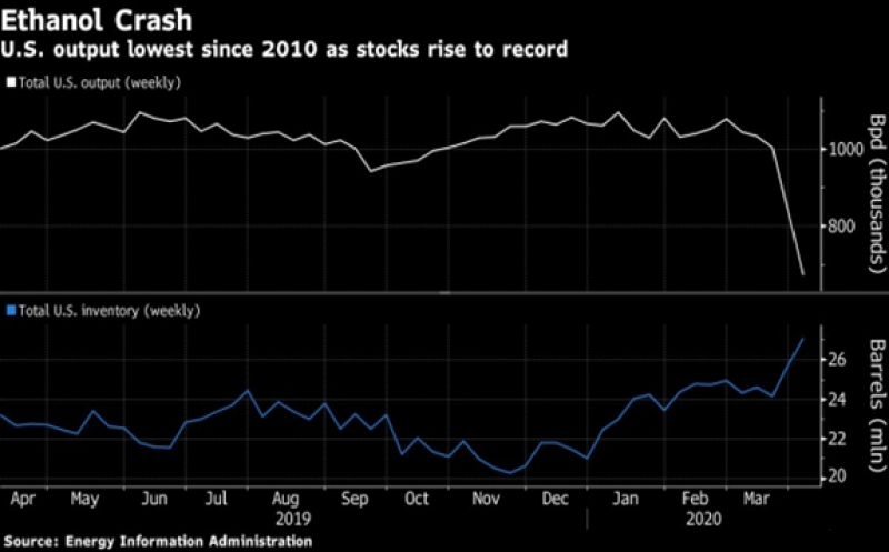 Fuel Demand Rout Sends U.S. Ethanol Output to Lowest in a Decade