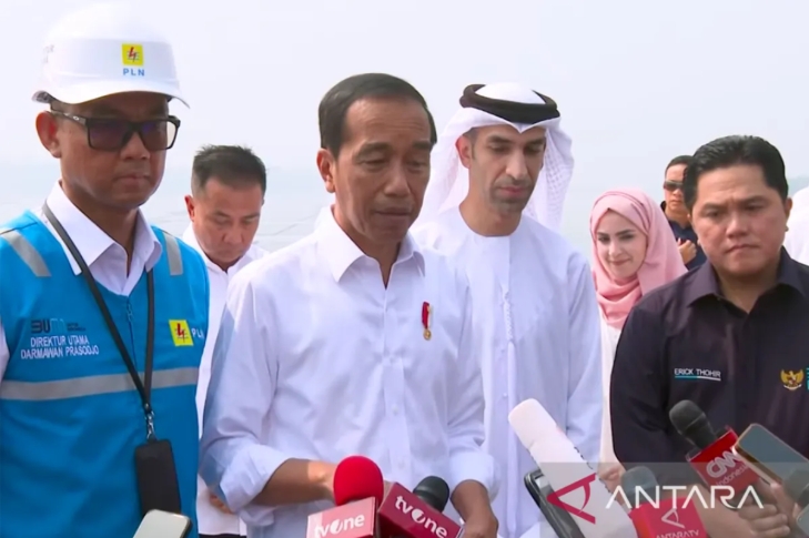 A screenshot of President Joko Widodo (second left) during a press statement after the inauguration of the Cirata Floating Solar Power Plant (PLTS) in Purwakart…
