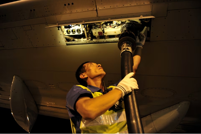 A worker refuels a Dalian Airlines aircraft with aviation fuel at an airport in Hohhot, Inner Mongolia, China August 3, 2015. REUTERS/Stringer/File photo Purcha…