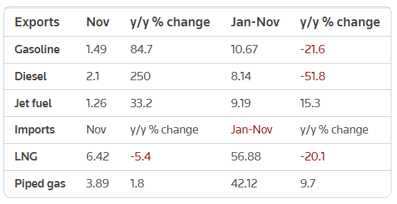 China's November Diesel, Gasoline Exports Jump To Highest In Over A Year