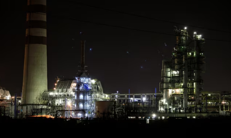 Flue gas and steam rise out of chimneys and smokestacks of an oil refinery during sunset on a frosty day in the Siberian city of Omsk, Russia, February 8, 2023.…