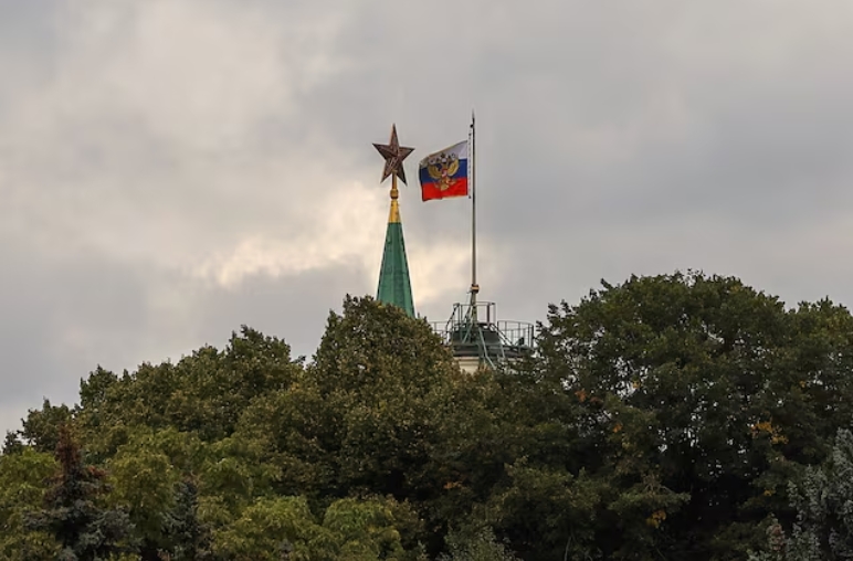 A Russian state flag flies near a tower of the Kremlin behind trees in central Moscow, Russia September 21, 2022. REUTERS/Evgenia Novozhenina/File Photo Purchas…