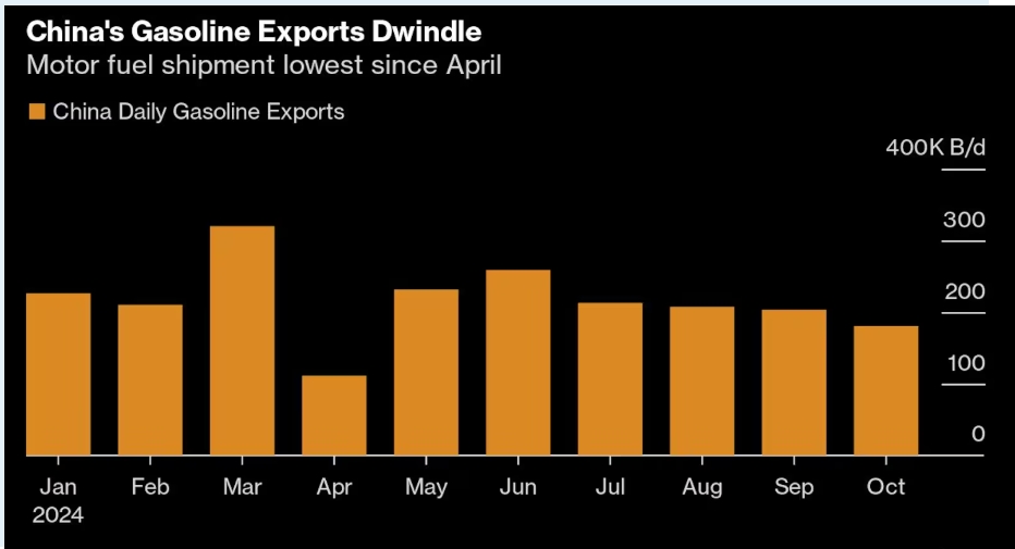 Gasoline exports from China sank to the lowest since April as refiners scale back operations and a holiday boosted local demand.Shipments dropped 8.2% from Sept…