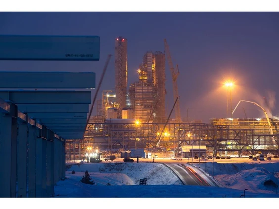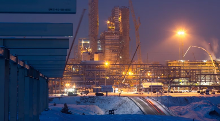 Lights illuminate the site of the Gazprom PJSC Amur gas processing plant, under-construction by China Gezhouba Group Corporation (CGGC), as part of the Power Of…