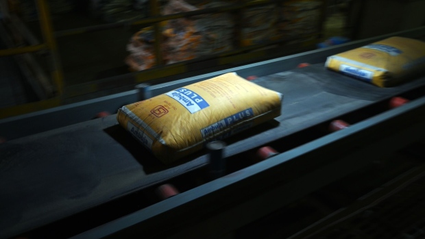 Sacks of cement travel on a conveyor belt at the Ambuja Cements Ltd. factory in Ambuja Nagar, Gujarat, India, on Friday, June 23, 2023. Adani Group is in talks …