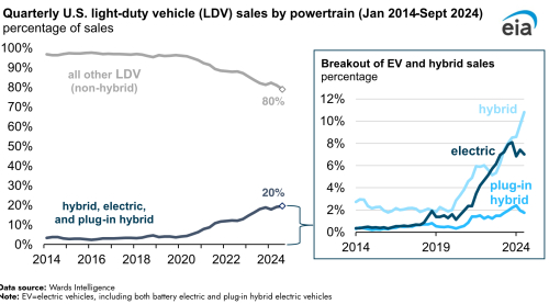 EIA: US Share of Electric and Hybrid Vehicle Sales Reached a Record in the Third Quarter, Driven Mainly by Hybrids