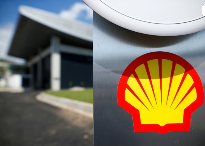 The logo of Royal Dutch Shell is pictured during a launch event for a hydrogen electrolysis plant at Shell's Rhineland refinery in Wesseling near Cologne, G…