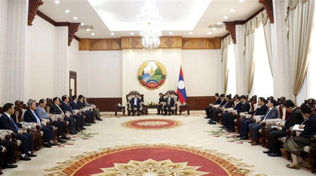 An overview of the meeting (Photo: VNA)Minister of Industry and Trade Nguyen Hong Dien had a meeting in Vientiane on April 8 with Lao Prime Minister Sonexay Sip…