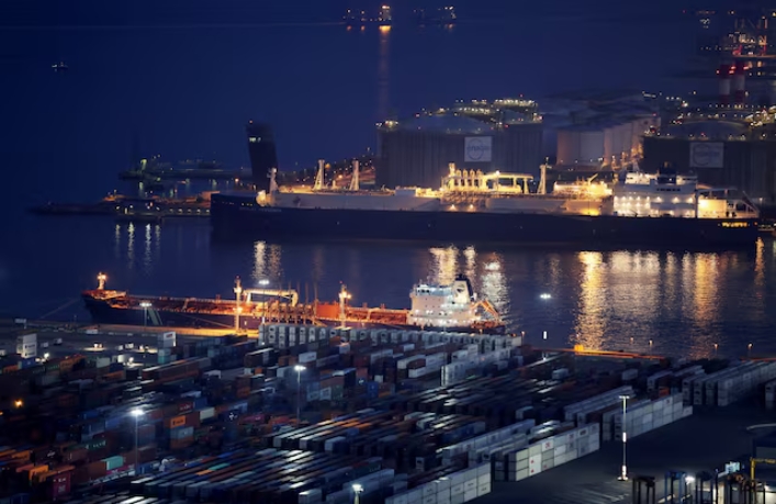 The Nikolay Yevgenov, a ship carrying Russian liquefied natural gas (LNG), is seen next to the terminal of Spanish gas grid operator Enagas ENAG.MC at the port …