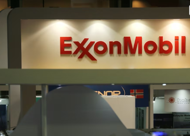A logo of the Exxon Mobil Corp is seen at the Rio Oil and Gas Expo and Conference in Rio de Janeiro, Brazil September 24, 2018. REUTERS/Sergio Moraes/File Photo…