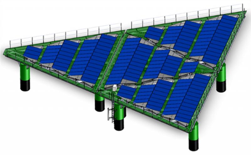 Dutch startup SolarDuck has developed a triangular structure for floating PV that resembles an offshore oil platform.