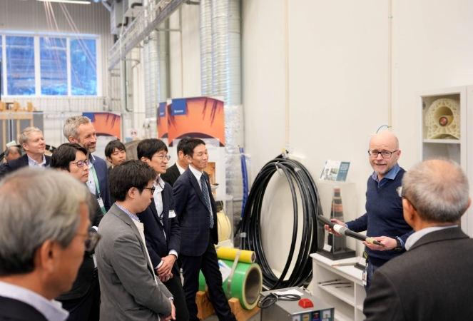 Dag Eirik Nordgård, Research Director of FME NorthWind shows the delegation from the Floating Offshore Wind Technology Research Association (FLOWRA) in Ja…