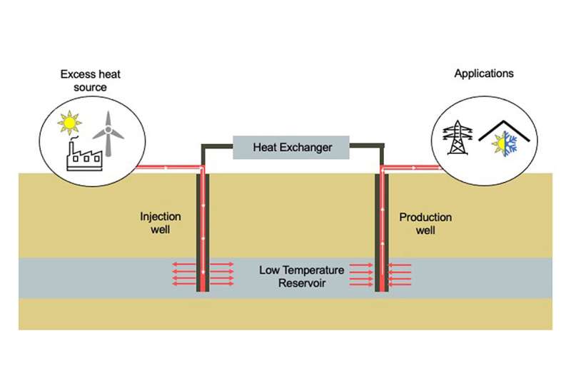 A conceptual schematic of the type of advanced geothermal energy storage system demonstrated in this study. Credit: Tugce Baser and Renewable EnergyResearchers …