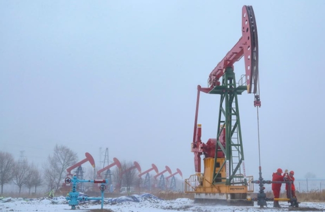 Workers perform their tasks at an oil platform in Daqing Oilfield in Daqing, northeast China's Heilongjiang Province, Nov. 25, 2024.China aims for stable cr…
