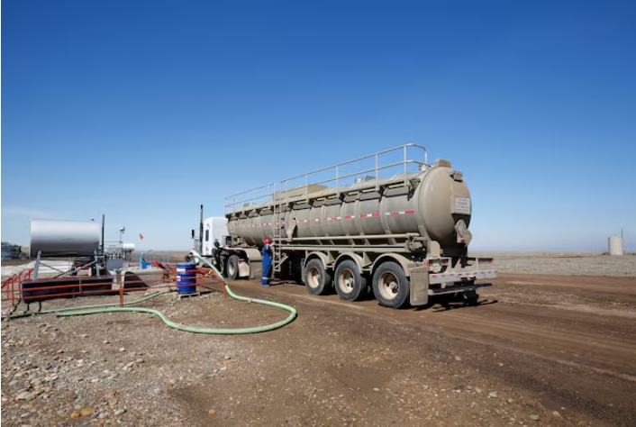 A tanker truck used to haul oil products operates at an oil facility near Brooks, Alberta, Canada April 18, 2018. Picture taken April 18, 2018. REUTERS/Todd Kor…